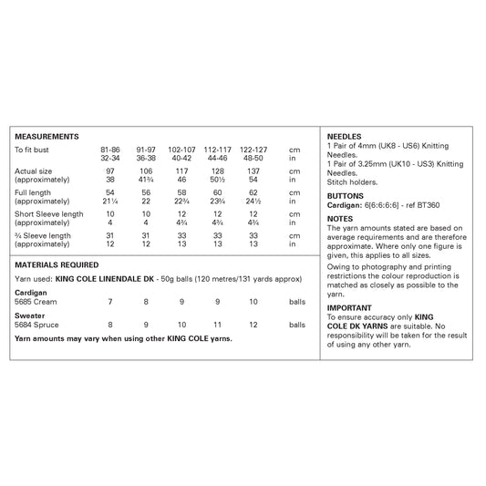 Cardigan and Sweater knitted in King Cole Linendale DK: 6482