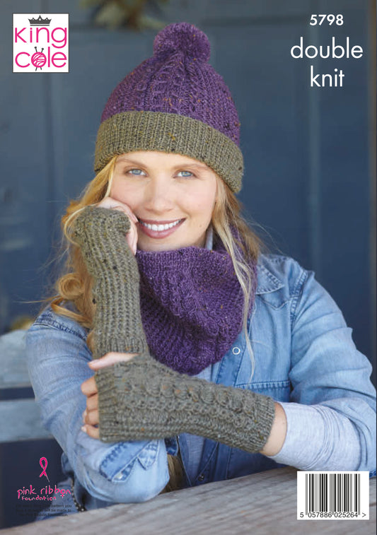 Hat, Scarf & Fingerless Mitts in Homespun Dk: King Cole 5798