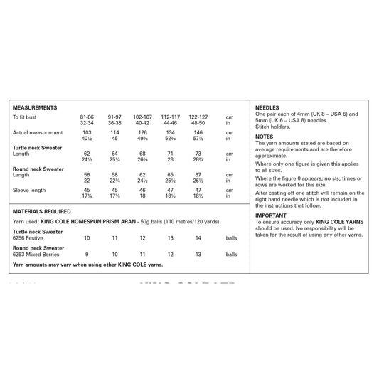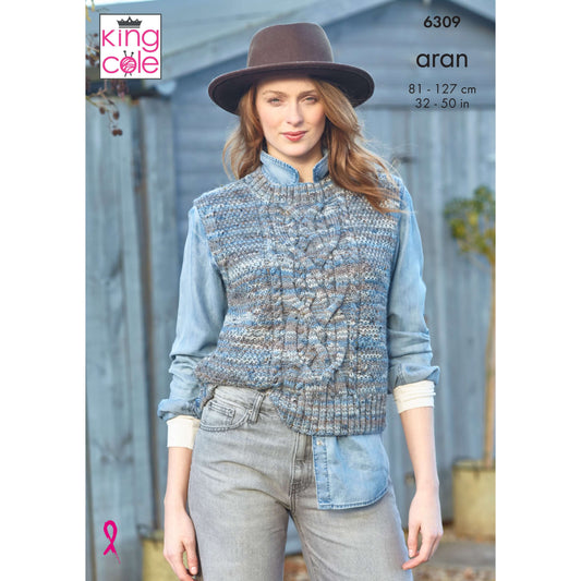 Ladies Round and V-Neck Tanks in King Cole Homesupun Prism Aran: 6309
