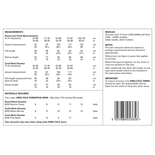 Family Sweaters in King Cole Homespun Prism Aran: 6304