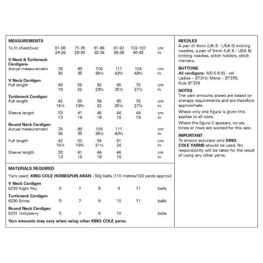 Family Cardigans knitted in Homespun Aran - King Cole Pattern 6417