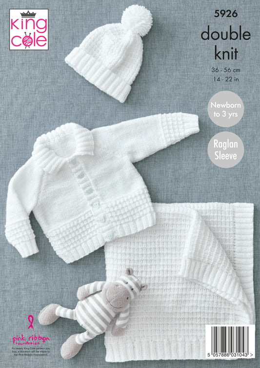 King Cole Cardigan, Hat & Blanket knitted in DK, 5926