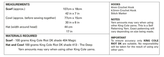 Scarf, Hat & Cowl Set: Crocheted in Riot DK: King Cole 5057
