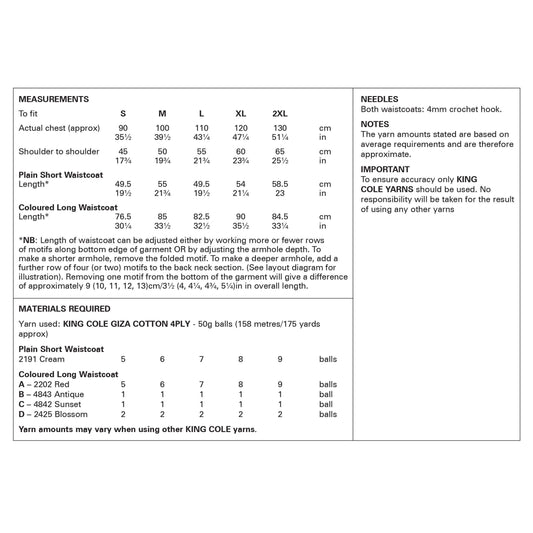 Granny Square Waistcoat crocheted In King Cole 4ply Cotton: 6331