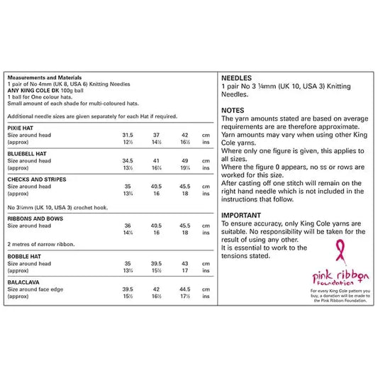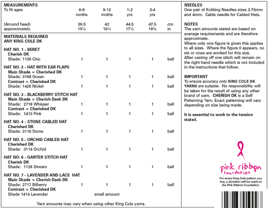 Baby and Children’s Hats knitted in King Cole Cherished DK: King Cole 5200