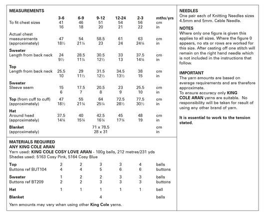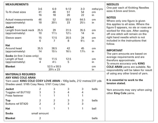 King Cole Jacket, Top, Hat, Socks, & Blanket Knitted in Cosy Love Aran 6045