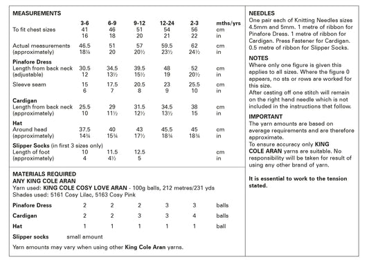 King Cole Pinafore Dress, Cardigan, Hat, & Slipper Socks Knitted in Cosy Love Aran 6046