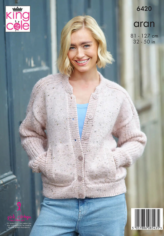 Ladies’ Cardigans knitted in Homespun Aran - King Cole Pattern 6420