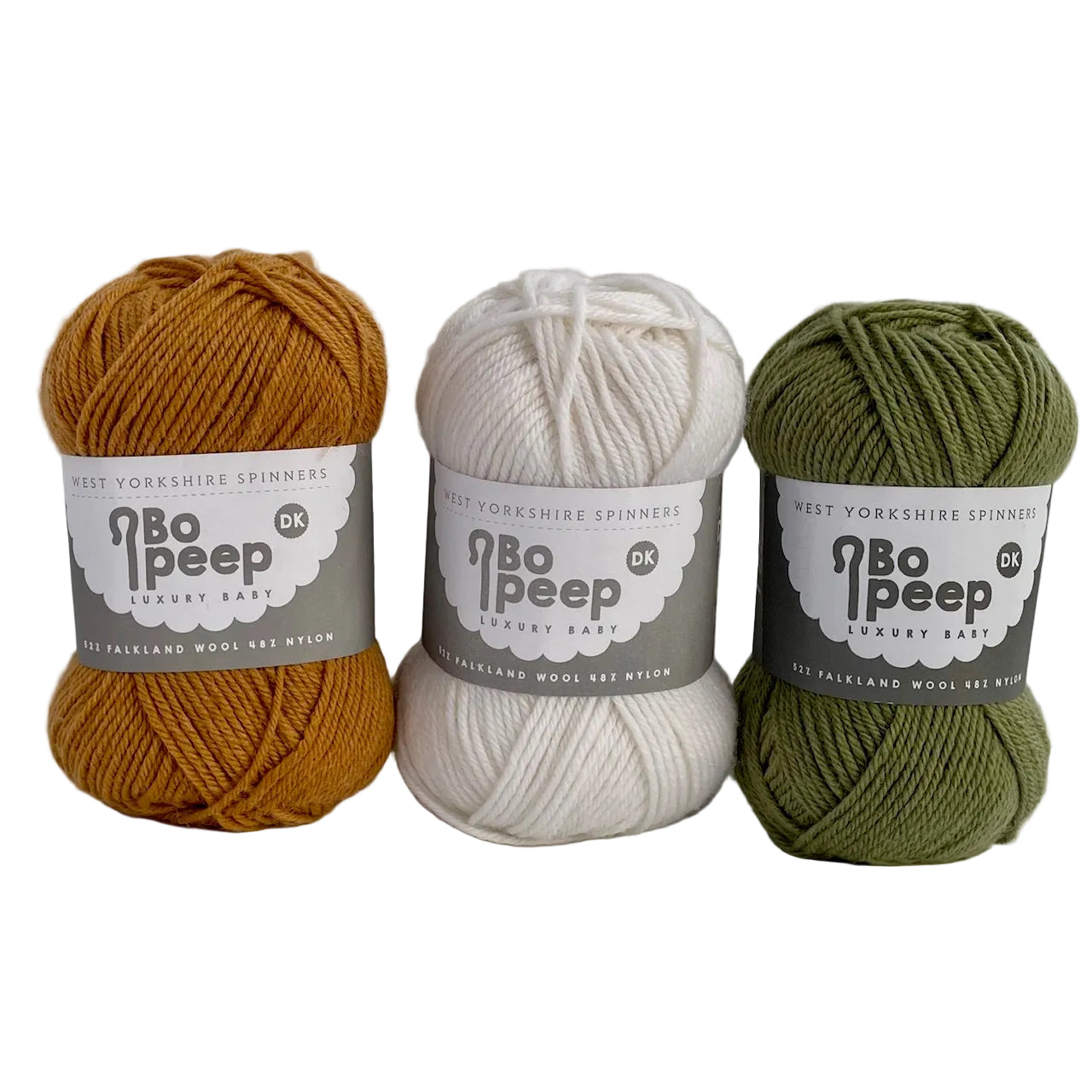 Each Kit contains 3 x 50 gram balls of West Yorkshire Spinners Bo Peep in contrasting colours, Stitch Marker and a printed copy of the Tin Can Knits pattern.