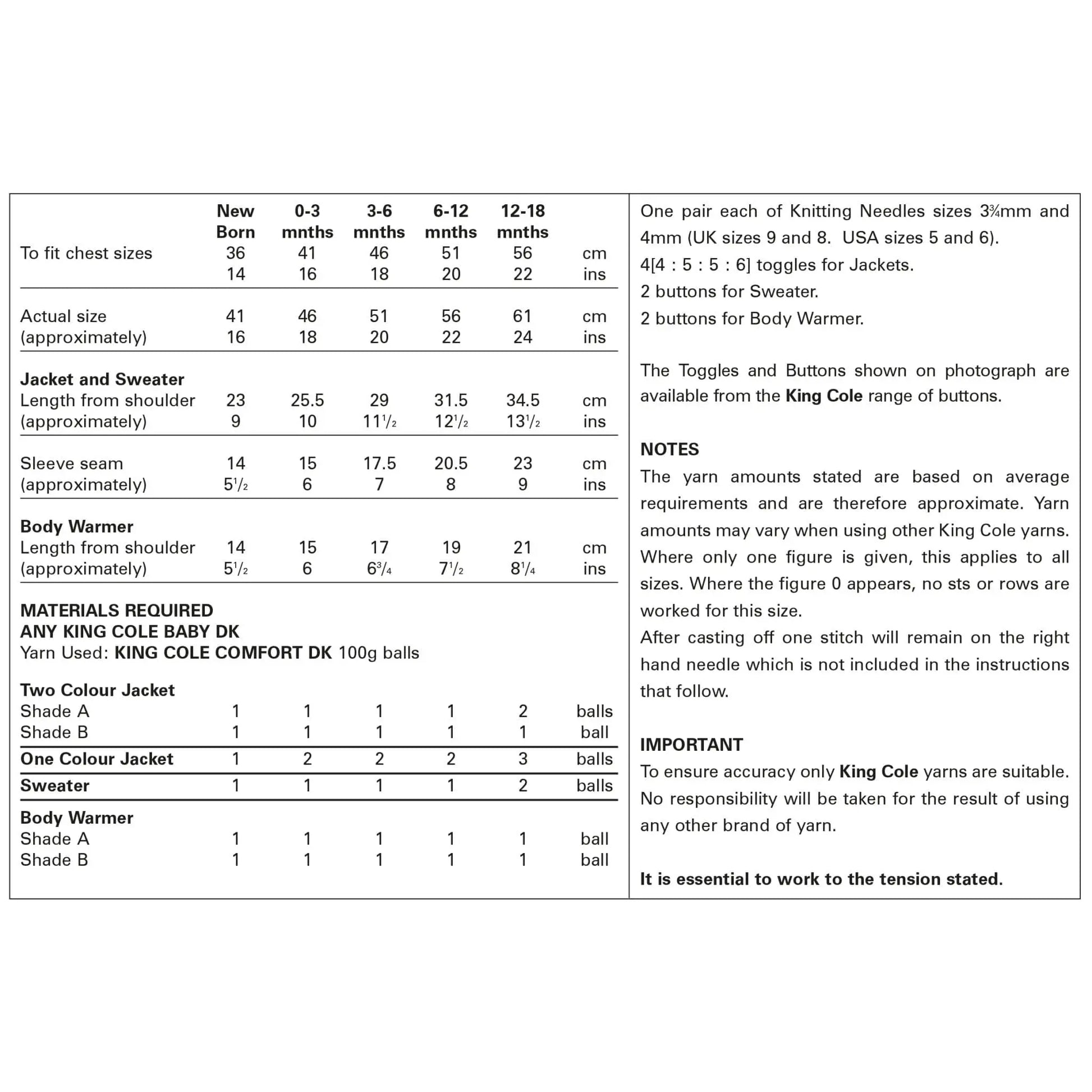 King Cole Pattern 3013. Baby Jacket, Sweater and Body Warmer in DK Yarnd Body Warmer in DK yarn