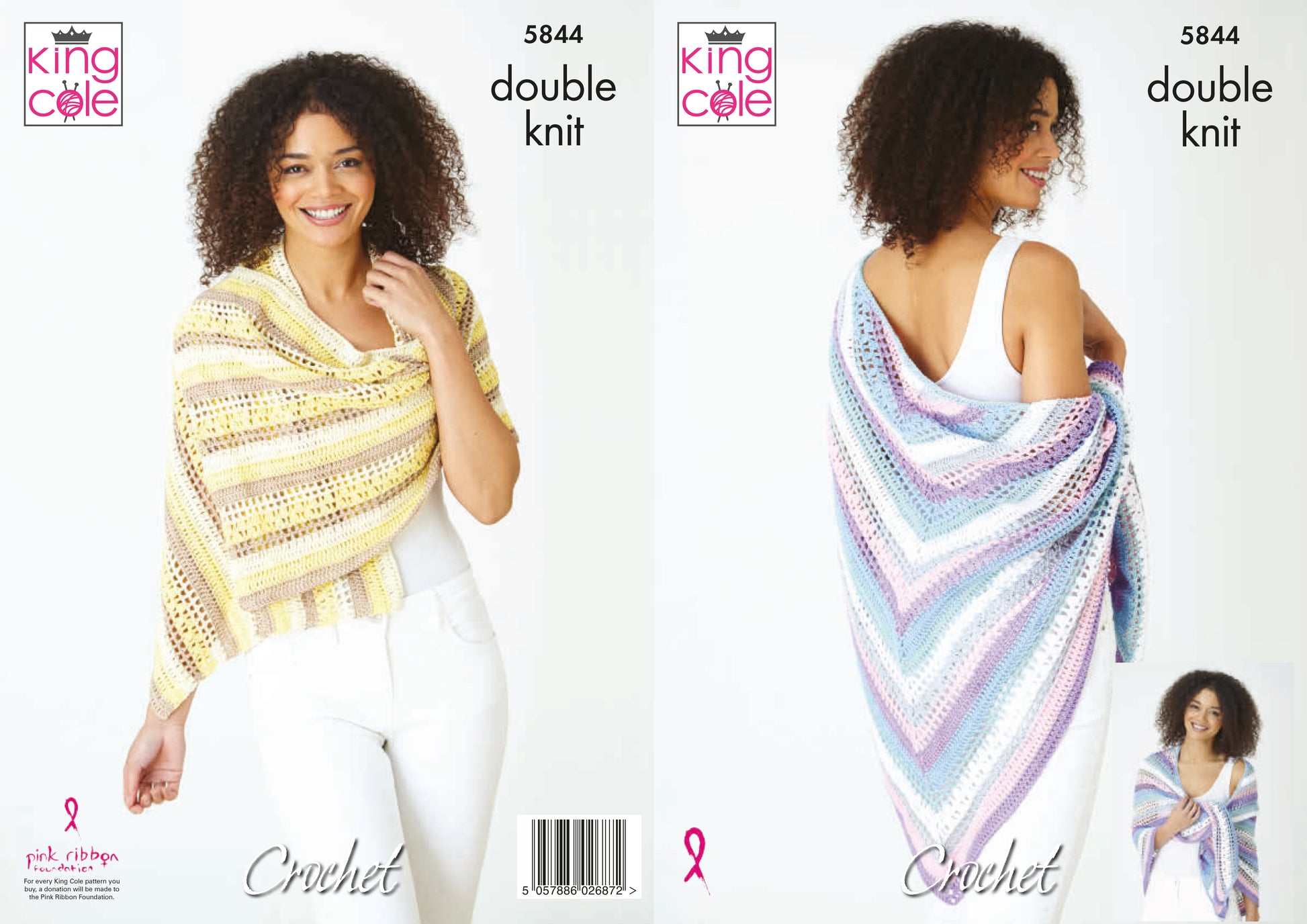 This King Cole pattern contains two shawl designs, each crocheted in King Cole Cottonsmooth DK.