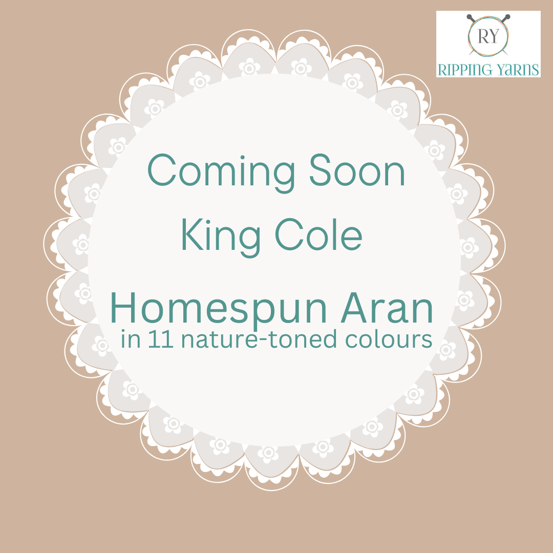 Homespun Aran is a beautifully soft, tweed-style yarn with a distinctly rustic and comforting character. Each strand carries subtle neps that create a naturally speckled, homespun look reminiscent of hand-spun wool. The palette is deeply cohesive, built around gentle, muted tones that feel warm and familiar.