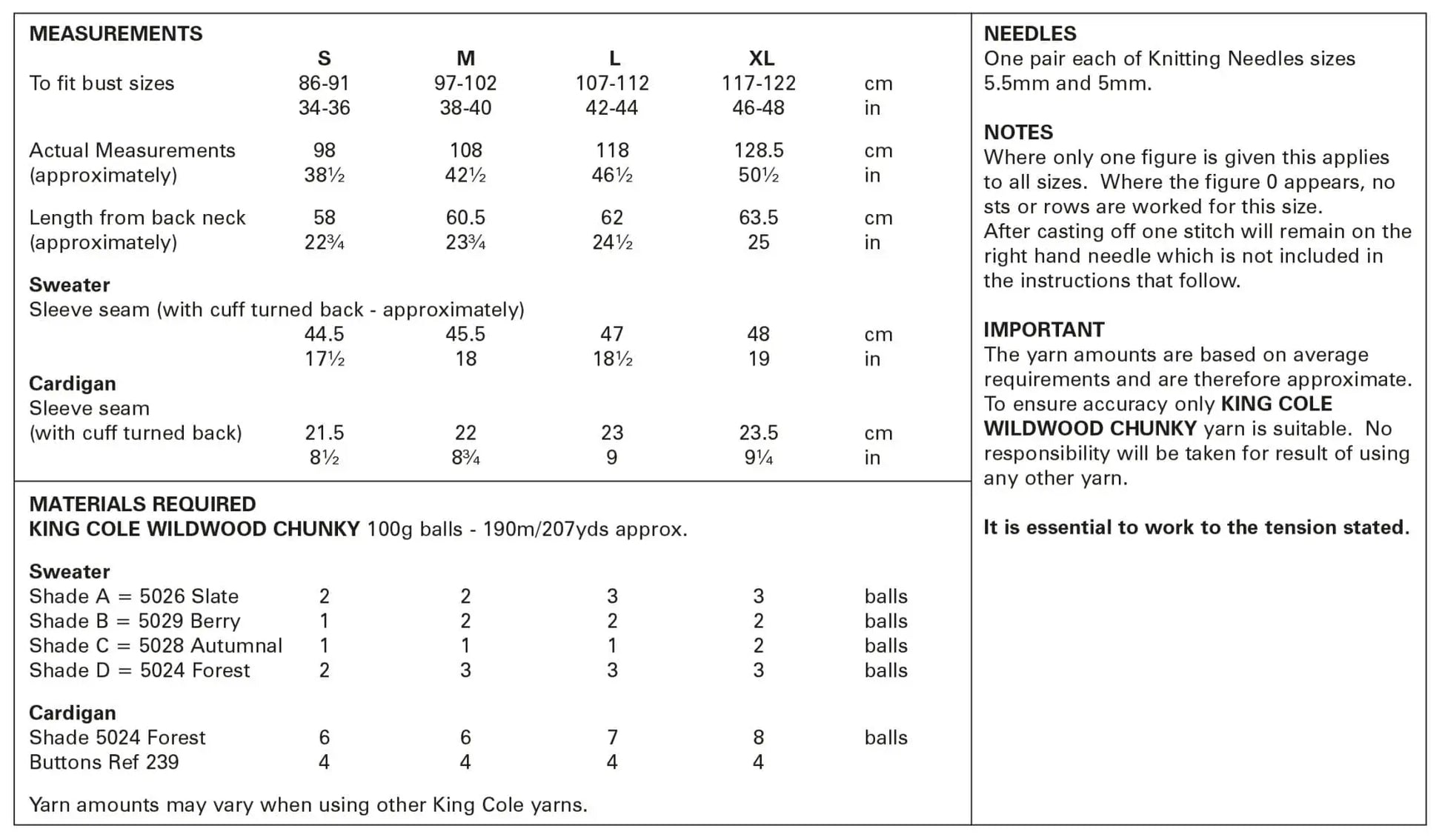 King Cole Pattern 5891 - Sweater and Cardigan Knitted in Chunky Yarn