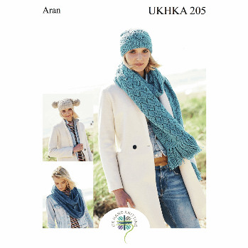UKHKA Pattern - 205 Hats & Scarves knit in Aran Yarn