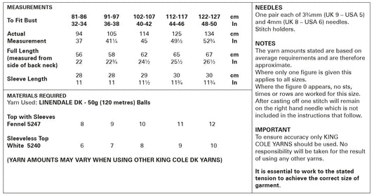 Tops knitted in King Cole, Linendale DK - 5989